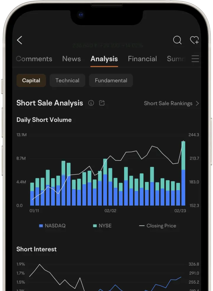 • Spot short sale signals and discover more potential opportunities in short sale activities with daily short sale ranking, short interest, and featured daily short volume.